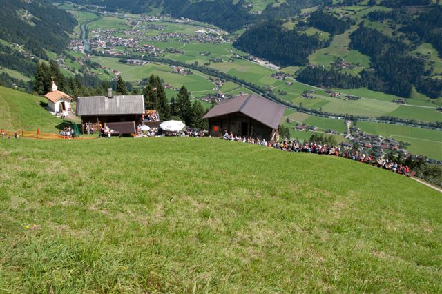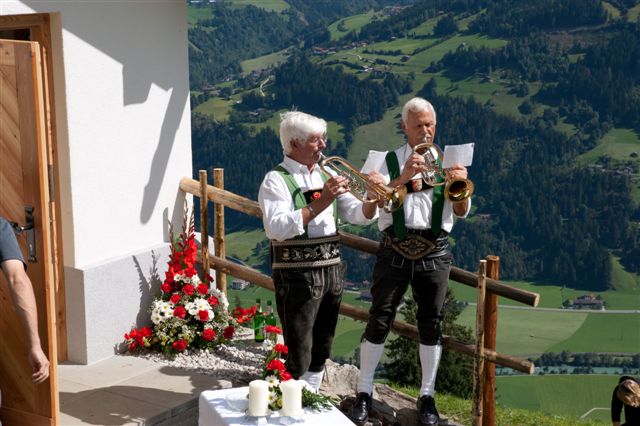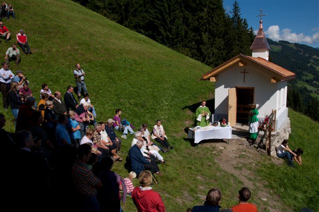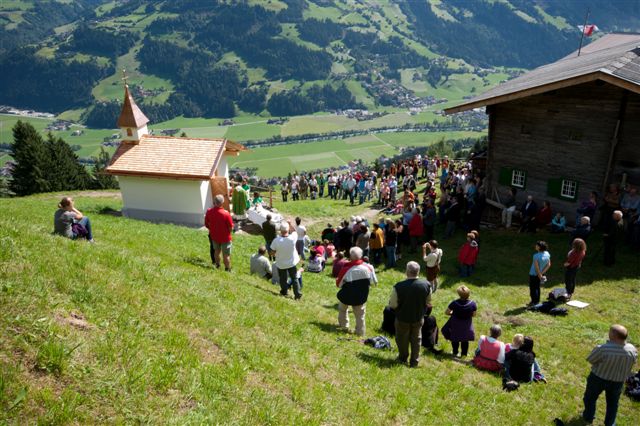 Die Kapelle wird unter den Schutz von Johannes dem Täufer gestellt, den Altarraum ziert unter anderem die bei Sanierungsarbeiten auf dem Dachboden gefundene Monstranz. Zelebriert wurde der Weihegottesdienst von Gastpfarrer Rolf Merkle, der als Hüttenpächter seine Freizeit häufig am Schwendberg verbringt.Das Bläserduo Walter Sauerwein-Adi Rinner und der Kirchenchor Hippach umrahmten die stimmungsvolle Feier.